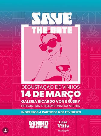 No dia 14 de março, São Paulo recebe uma edição especial do Vinho Pop Festival, criada para celebrar o Dia Internacional da Mulher, com vinho, música, arte, cultura e encontros. Desta vez, o evento acontece na Galeria Ricardo Von Brusky, no Jardim América, em São Paulo.