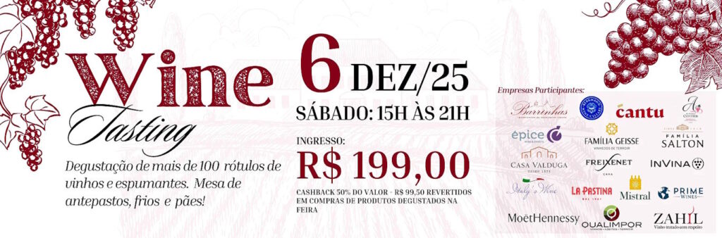 O Empório Frei Caneca fica no terceiro piso do Shopping, na Rua Frei Caneca, 569 – no bairro da Consolação em São Paulo. Mais informações e ingressos pelo site: https://www.emporiofreicaneca.com.br/produto/convite-wine-tasting-06-12-2025-157152.