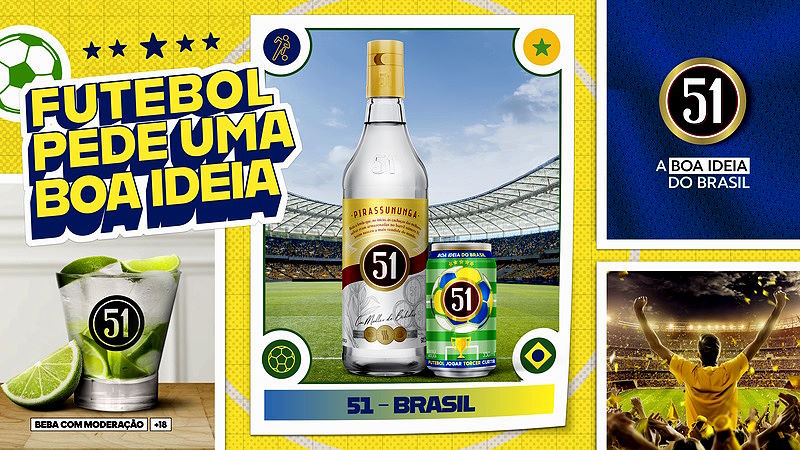 O rótulo temático também representa o início de uma campanha ampla, com experiências que irão conectar o país, o futebol e a Cachaça 51 em uma celebração à brasilidade, nos próximos meses.