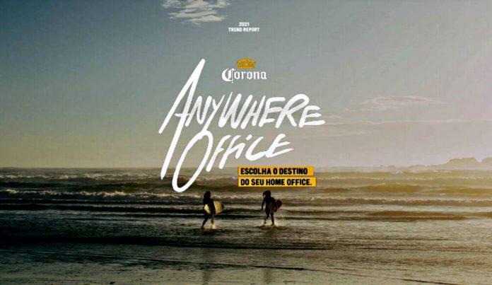 Cerveja Corona lança campanha “Anywhere Office” de apoio ao trabalho remoto, além de sortear uma semana em um paraíso natural brasileiro