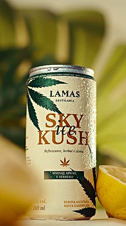 O Sky Kush Ice une whisky, limão e terpenos naturais extraídos da cannabis em uma bebida pronta para beber em lata, leve e gaseificada, com 6% de teor alcoólico, pensada para consumo gelado e ocasiões descontraídas. Mas atenção: a proposta pode soar provocativa, mas a bebida não causa qualquer efeito psicoativo, pois não contém THC nem CBD. O protagonismo é sensorial.