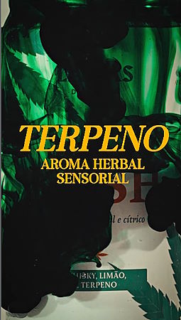 Os terpenos (compostos aromáticos presentes em diversas plantas) adicionam camadas herbais, cítricas e levemente resinosas ao perfil da bebida. O terpeno escolhido para o Sky Kush Ice vem da OG Kush, uma das strains mais conhecidas da cannabis, valorizada justamente por seu perfil aromático. Na bebida, ele não remete a efeitos, mas a aroma e sabor, criando um diálogo inesperado com o whisky e o frescor do limão.