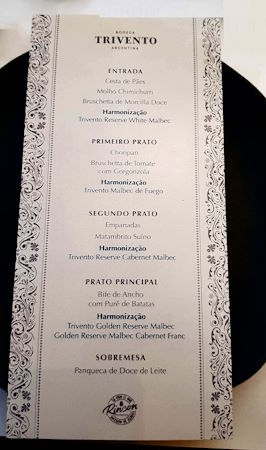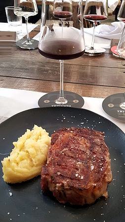 Na sequência provamos o Trivento Malbec de Fuego com Choripan e uma saborosa Bruschetta de tomate com gorgonzola. Passamos para o Trivento Reserve Cabernet-Malbec com as tradicionais Empanadas argentinas e Matambrito suíno. Excelentes harmonizações! Já para o prato principal, um excepcional Bife de Ancho com Purê de batatas, o escolhido foi o Trivento Golden Reserve Malbec-Cabernet Franc que simplesmente entregou o que a enogastronomia argentina tem de melhor.