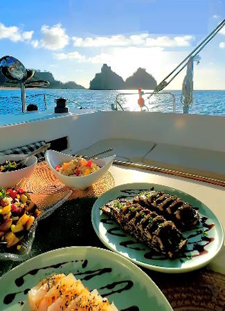 A programação inclui navegação, ancoragem, mergulho, exploração da ilha e pesca oceânica com gastronomia a bordo, quando um chef prepara pratos com os peixes capturados pelos próprios clientes, sempre harmonizados com o rótulo francês. Os passeios terão início a partir das 8h e terão duração aproximada de quatro horas, comportando até 20 pessoas.