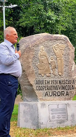 Outra celebração foi a inauguração de um memorial com uma pedra com placa alusiva à primeira sede da Aurora, na praça do bairro Borgo, em Bento Gonçalves, local onde, em 1931, os 16 associados se reuniam para dar início à criação da cooperativa. Mais informações no site: www.vinicolaaurora.com.br e no Instagram: @vinicolaaurora